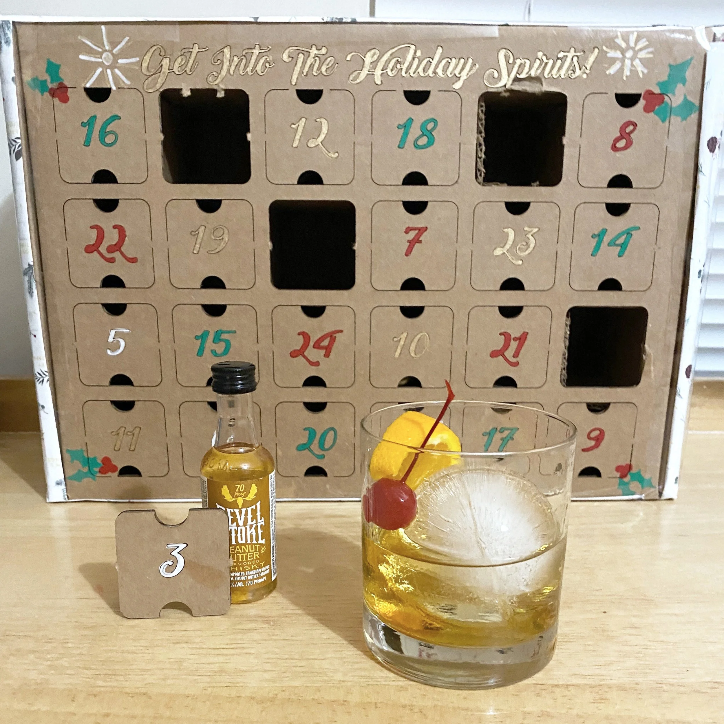 If you follow me on social media, you might remember when I did the wine advent calendar I got from Costco last year. This year Josh wanted to do one with me, but not with wine. I searched high and low on Google, but could not find a good spirit calendar, so I made one.